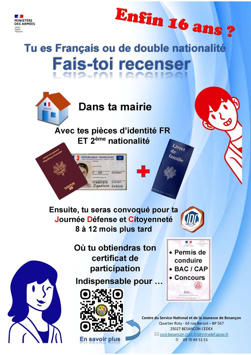 Ce recensement permet à l'administration de convoquer le jeune à la journée défense et citoyenneté (JDC).